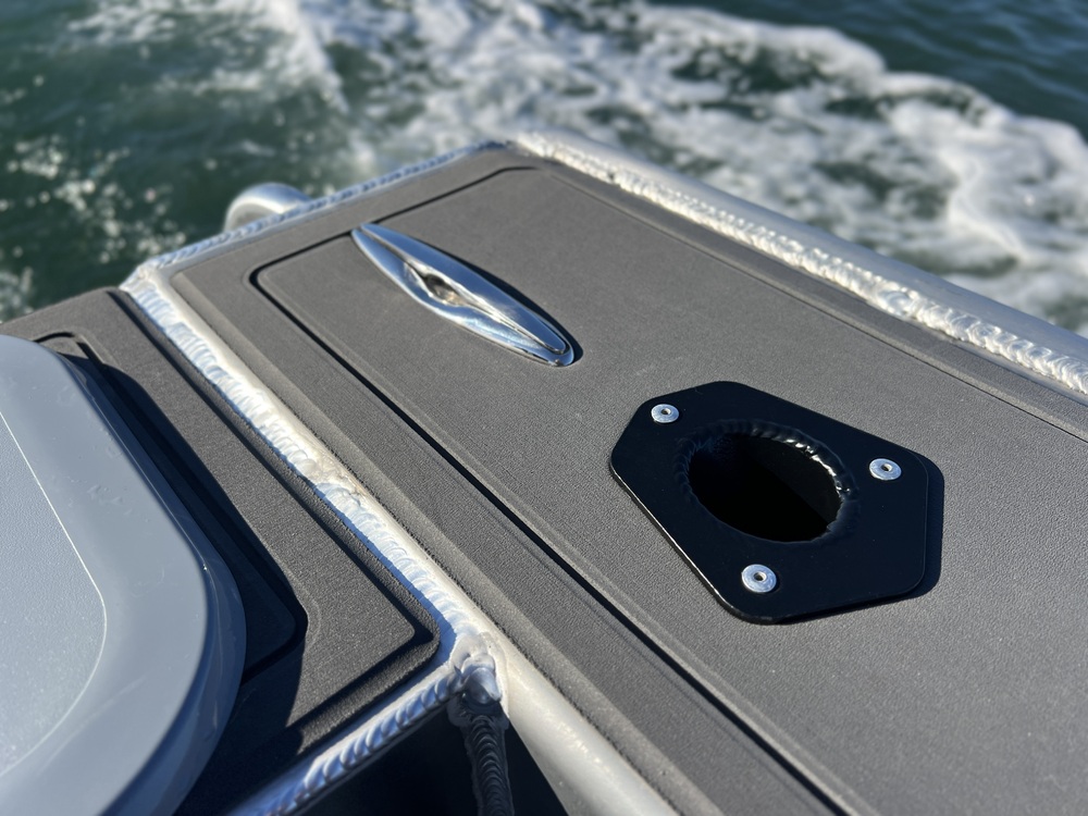 Twin helm seats provide comfort at the controls, while an optional cushioned chilly bin adds functionality to the rear deck - great for extra seating or stowing the day’s catch without impacting cockpit space. The 90L fuel tank provides ample range for fishing adventures, or hours of fun towing the kids on a biscuit.